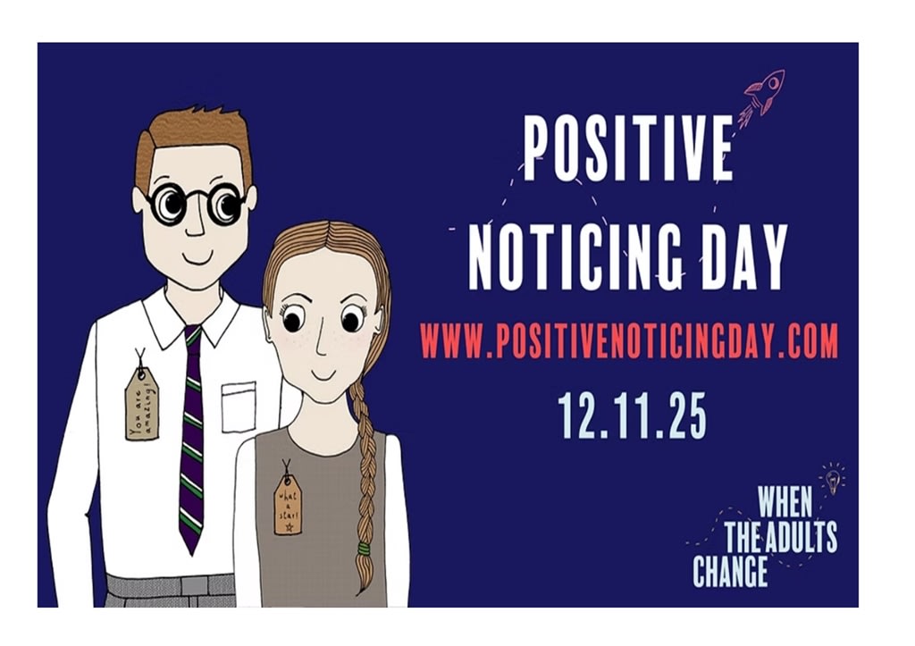 Positive Noticing Day – Wednesday 12th November: We’ll be encouraging pupils and staff to notice and celebrate the positive qualities in one another, helping to build confidence and connection.