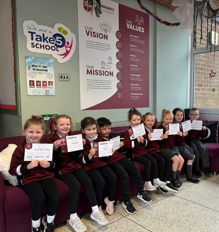 🌟 St Bernard’s Way Award – For being consistently Ready, Respectful, and Safe in everything they do. These pupils set the standard and lead by example every single day.