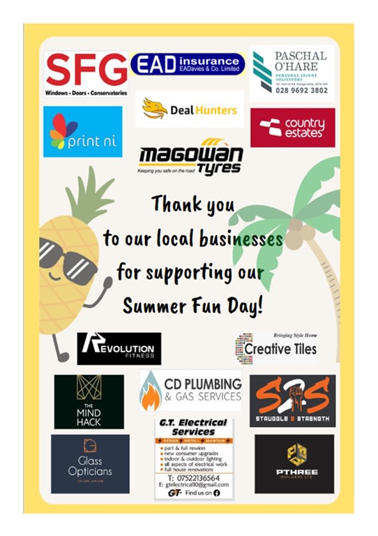 We’re incredibly grateful to the local businesses who are supporting our Summer Fun Day! Their generous sponsorship is helping us create a fantastic event for our pupils and raise vital funds for our school.